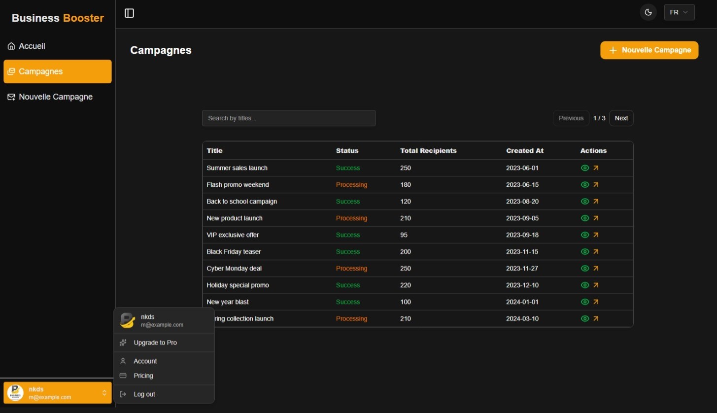 Grâce à Business Booster , j’ai pu automatiser mes relances clients. La gestion des contacts et des campagnes est rapide et ultra efficace .
